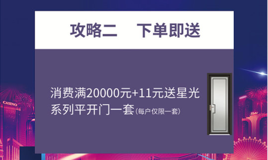 进店主顾花费满20000元,便可享用11元购代价1980元的星光系列平开门一套;